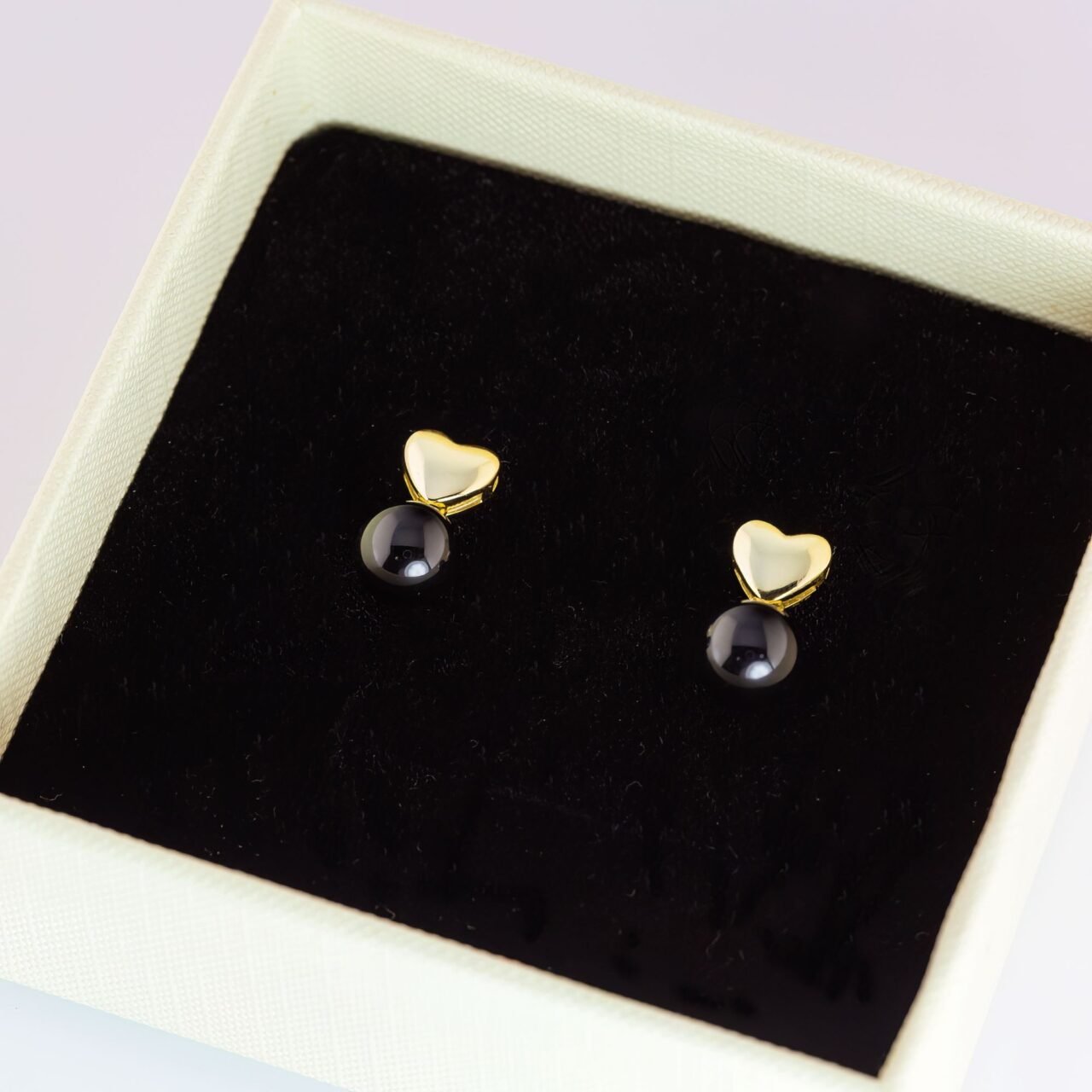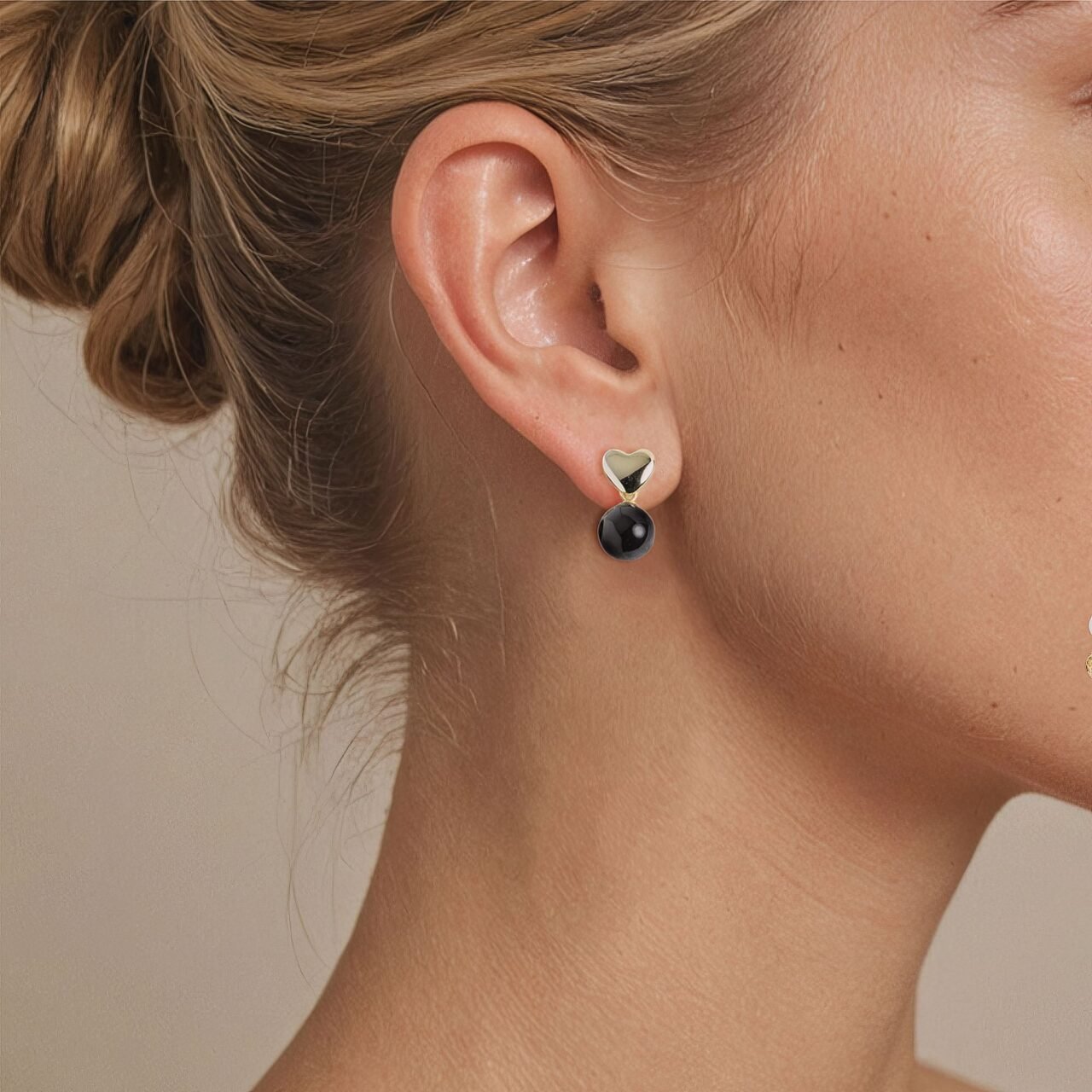 Add a touch of elegance to your look with these charming gold heart earrings, featuring a sophisticated black onyx drop. Black onyx signifying protection, symbolizes the importance of protecting oneself and nurturing self-care.